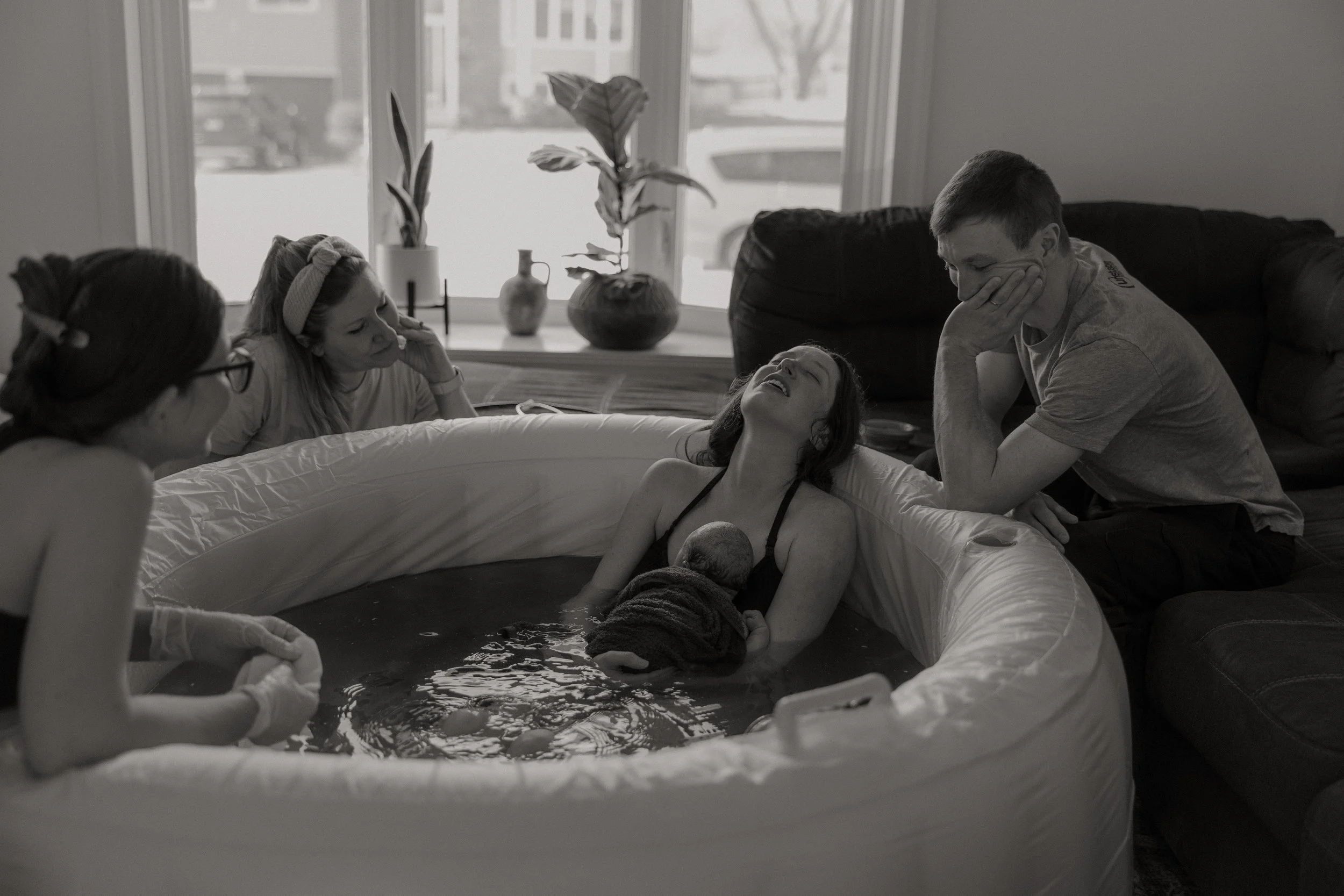 Continuous in person support throughout active labor and the birth of your baby. Will provide guidance through position changes to facilitate baby’s decent in an optimal position and offer hands on physical and emotional support. Provide pain relief techniques eg. use of TENS unit, hydrotherapy, movement, counter pressure, meditation